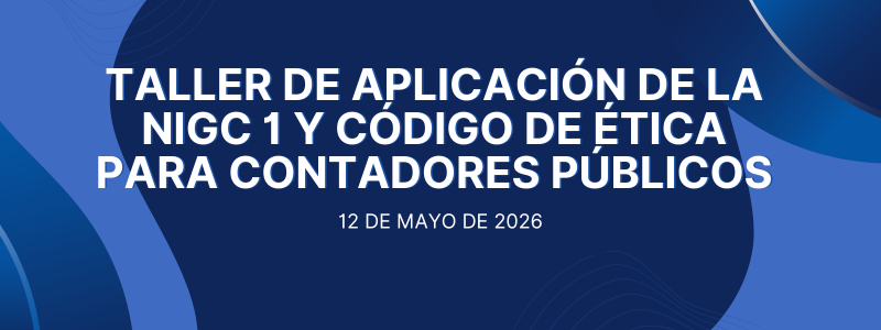 2026, Eventos Taller de aplicación de la NIGC 1 y Código de ética para Contadores Públicos 12 de mayo de 2026 5:00 a 9:00 p.m. 100% virtual ZOOM Leer más